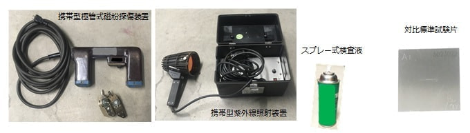 きずが肉眼で明瞭に識別でき,磁束により磁粉模様が形成できる性質を有する。ブラックライトに照射されると黄緑色に輝き,きずの磁粉模様を容易に発見できる。検査液は水を分散剤として界面活性剤及び防錆剤も含みます。